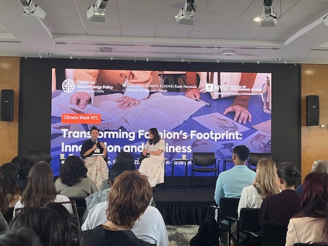 Hi! This is a bit of a beast so buckle up. I just reemerged into my normal life of preschool pickups and drop-offs, heavy athleisure and no makeup after a whirlwind Climate Week in NYC. My inaugural Climate week. I loved it but it was also very…Fashion. Or at least my experience of it was very Fashion. One could have had 35 different iterations of Climate week: CPG, Ag, AI, clean energy, built environment, climate tech, beauty, social justice and on and on.